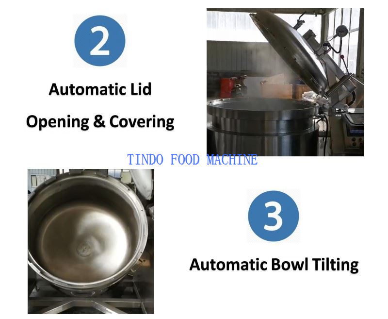 Industriel højtrykskogemaskine bruges i vid udstrækning til madlavning af hårde materialer på kort tid som knogler, bønner, kødsuppe osv. Den store kapacitet op til 1000 liter sigter mod at øge effektiviteten for hver batch inden for en kort arbejdstid. Det høje damptryk i gryden hjælper med at fortsætte med at tilberede materialer, selv opvarmningen er slukket, hvilket helt sikkert kan spare varmeenergi og reducere meget tilberedningstid sammenlignet med normalt arbejdstryk.